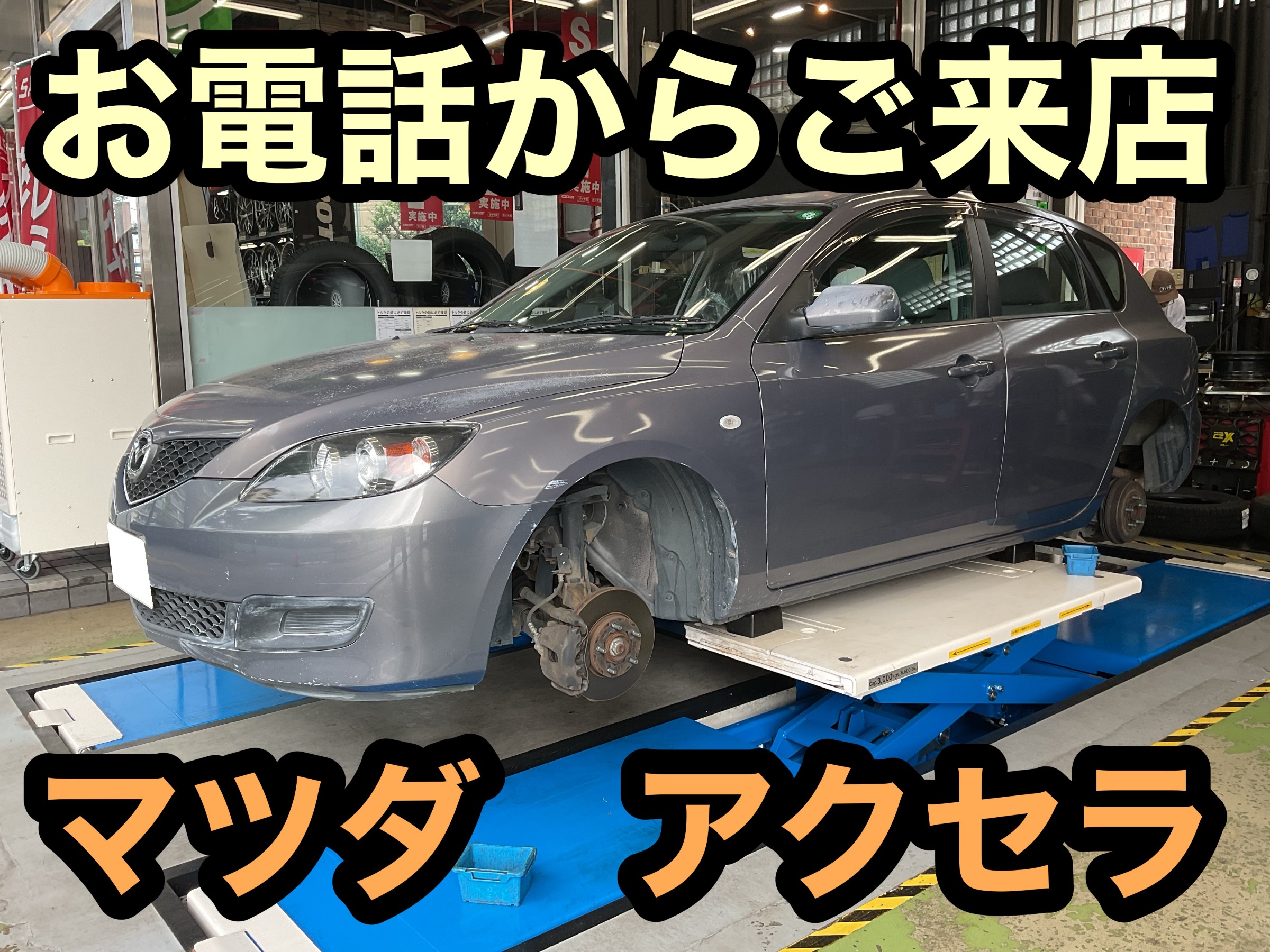 お電話によるタイヤ交換のお問合せからご来店頂いたアクセラになります。
