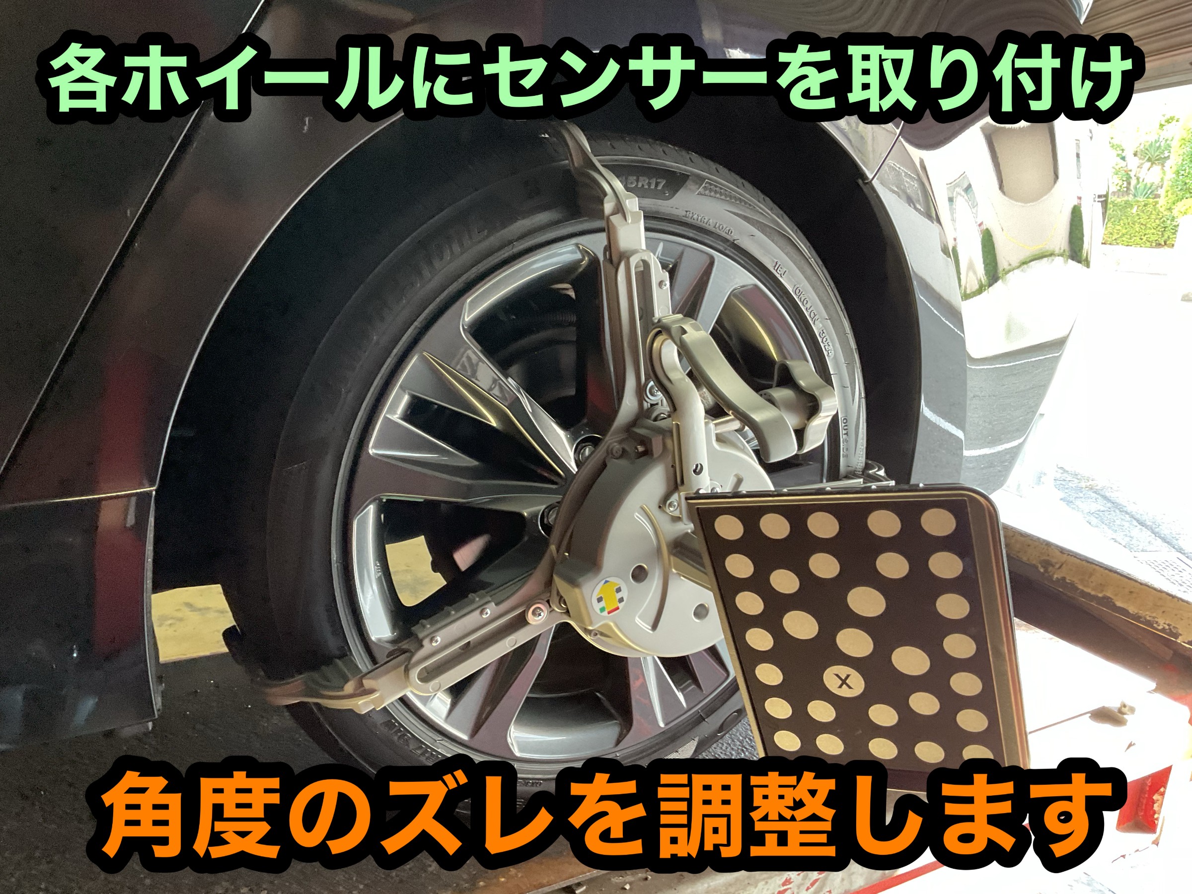 先程の偏摩耗を抑制するアライメント調整作業に入ります。