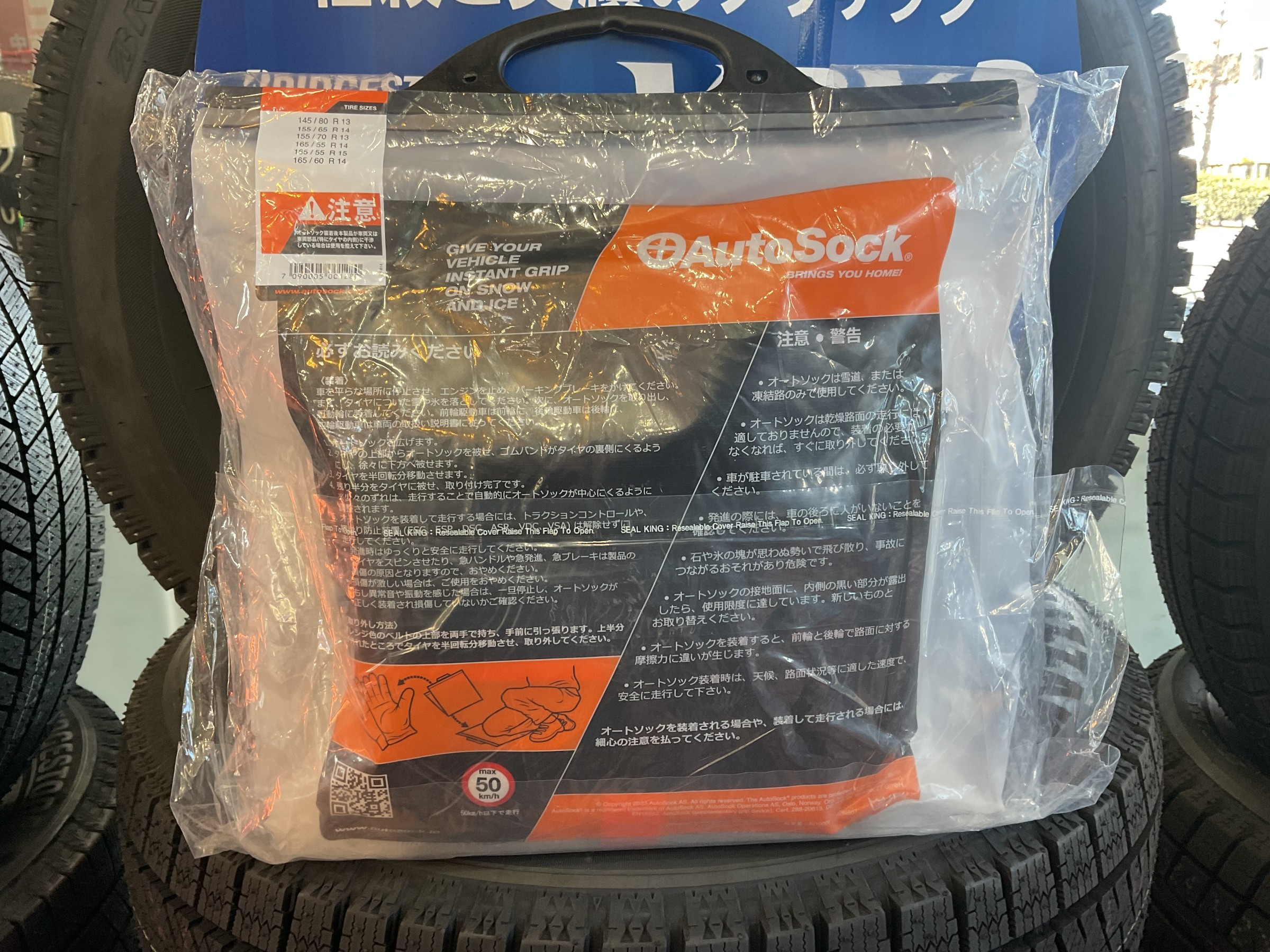 急な雪予報やチェーンが必要な時に持ち合わせていると便利な商品がオートソックです!!