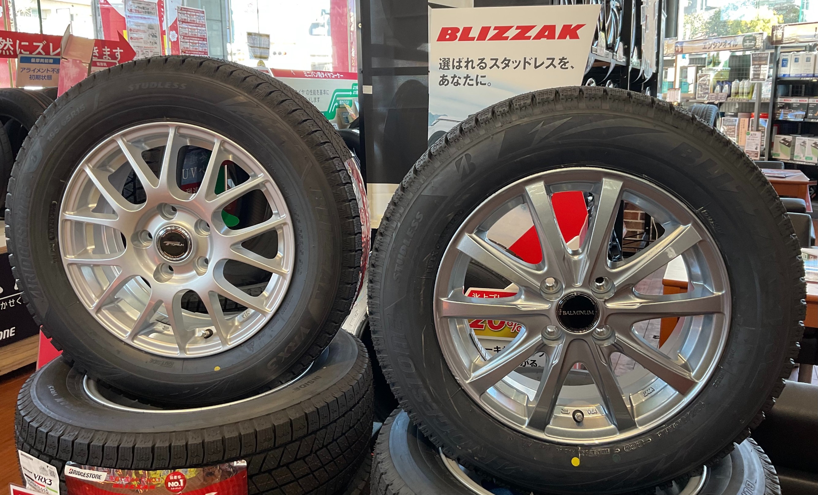 店内にてホイールセット