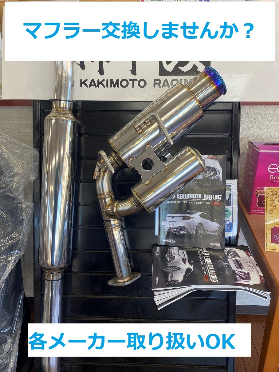 フジツボやHKS、トラスト、APEXi、柿本改、・・・・各メーカーお取り扱いしております。