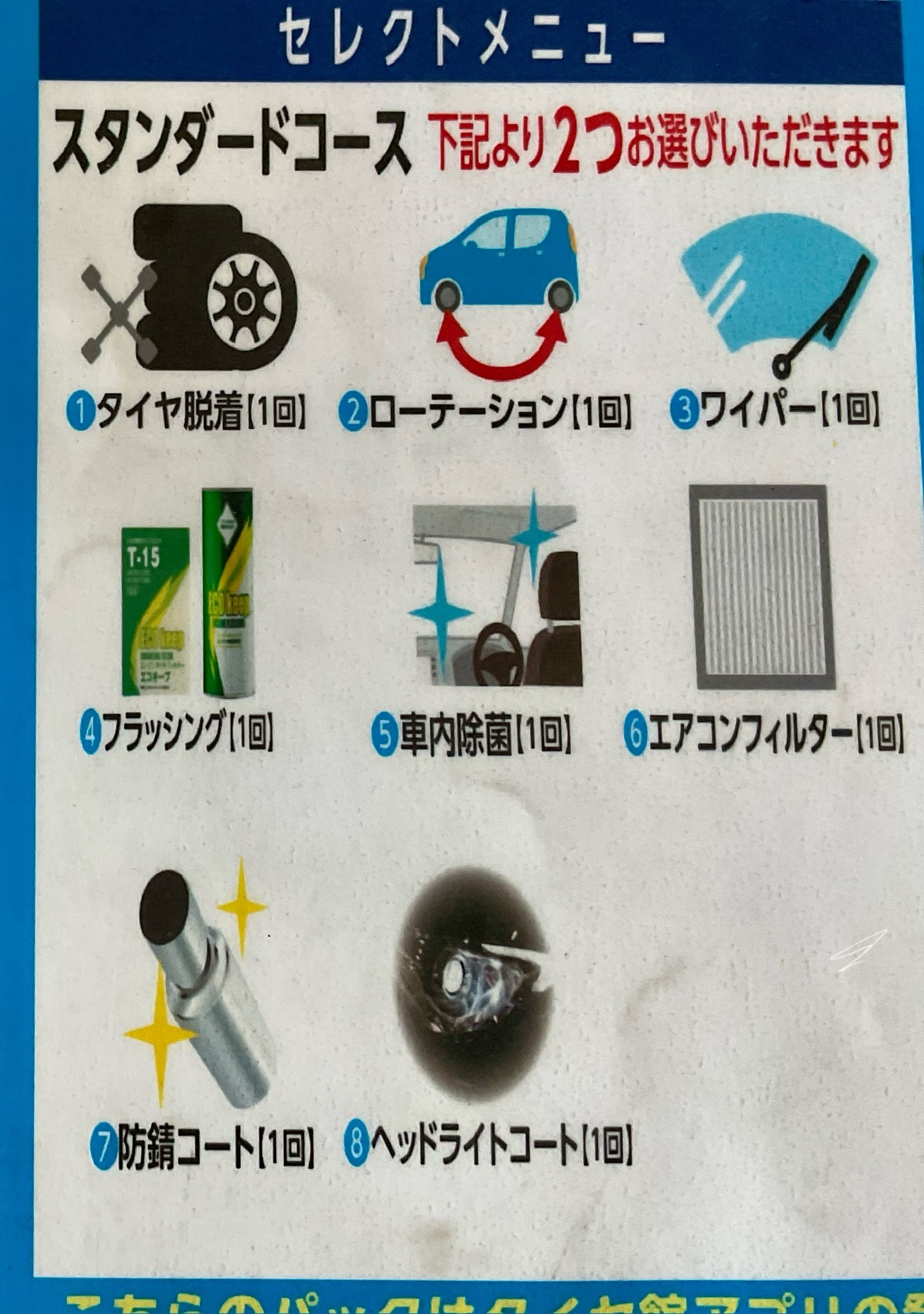 ①~⑧の中より2つお選びいただきます。