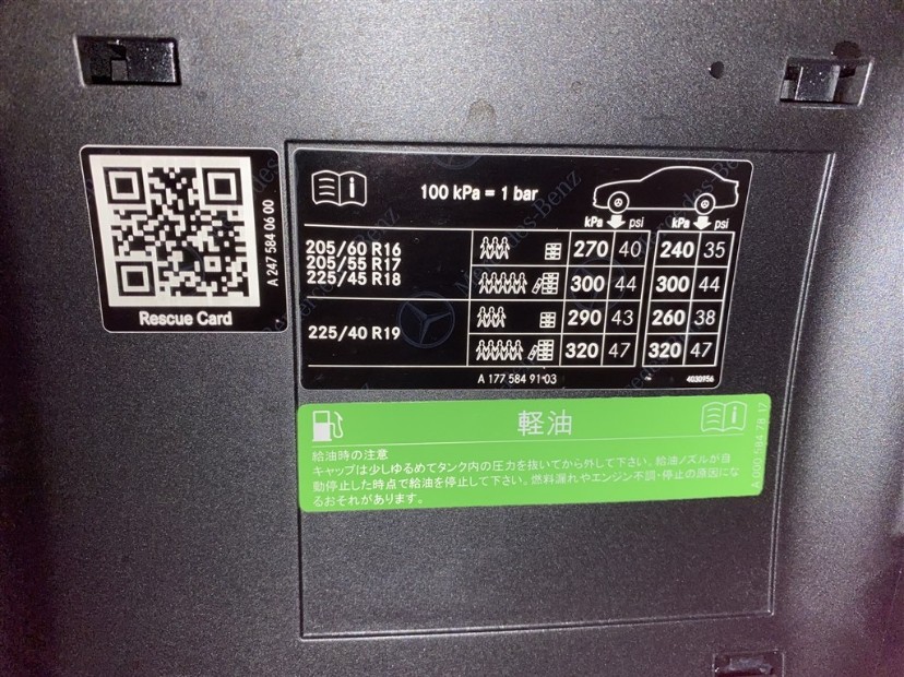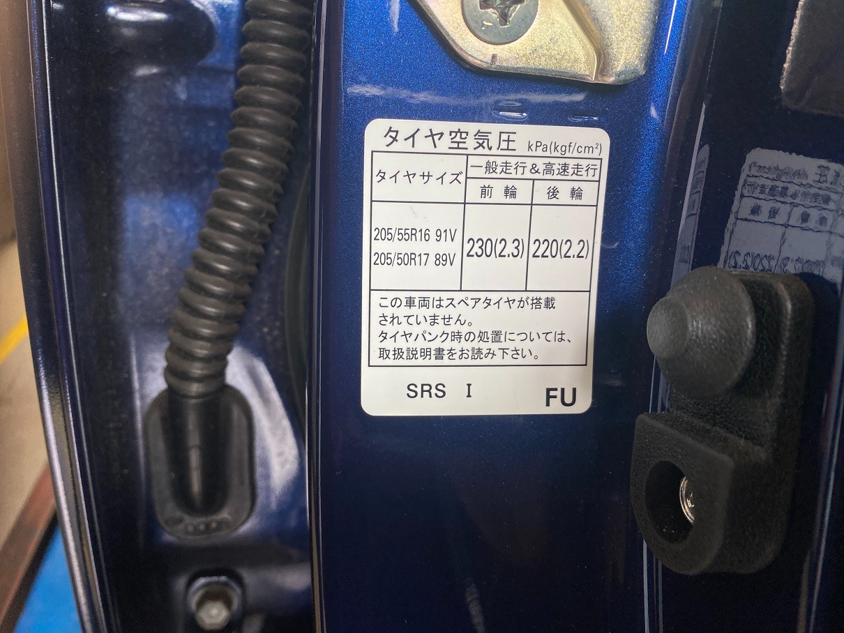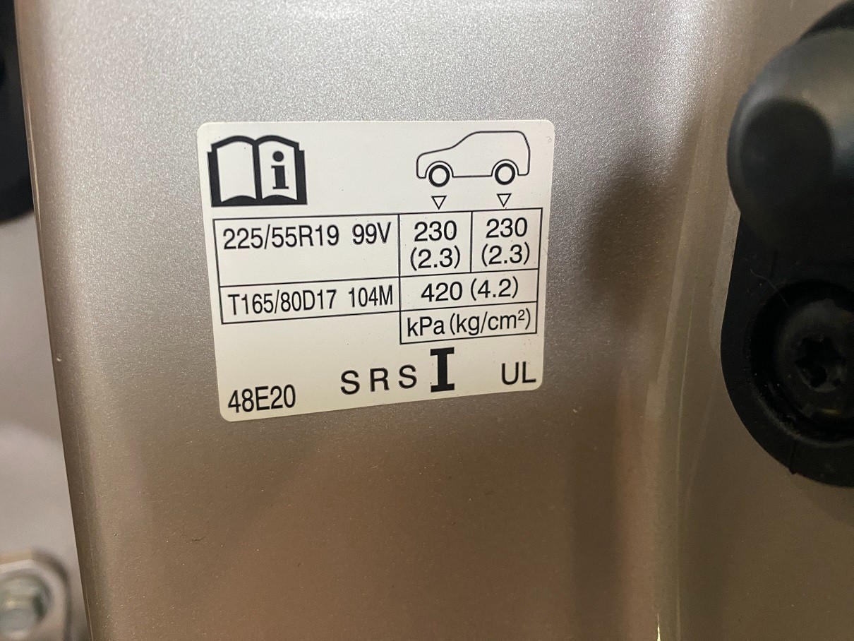 そこでまずは、車両のドアに空気圧表示ステッカーがあり、そこに記載があります。
