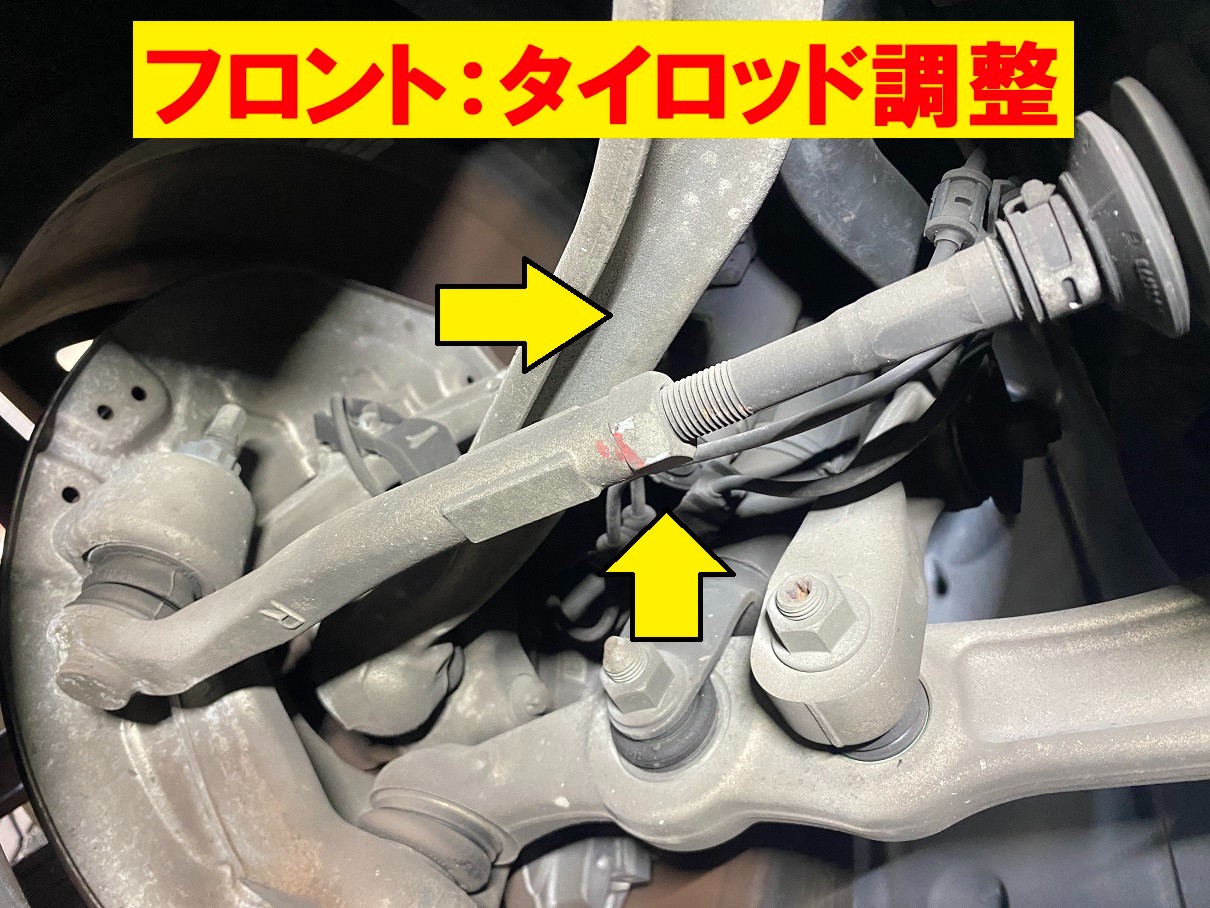 このお車は足回りがエアサスペンションの為、走行時のアライメントの変化も大きいと想像されます。