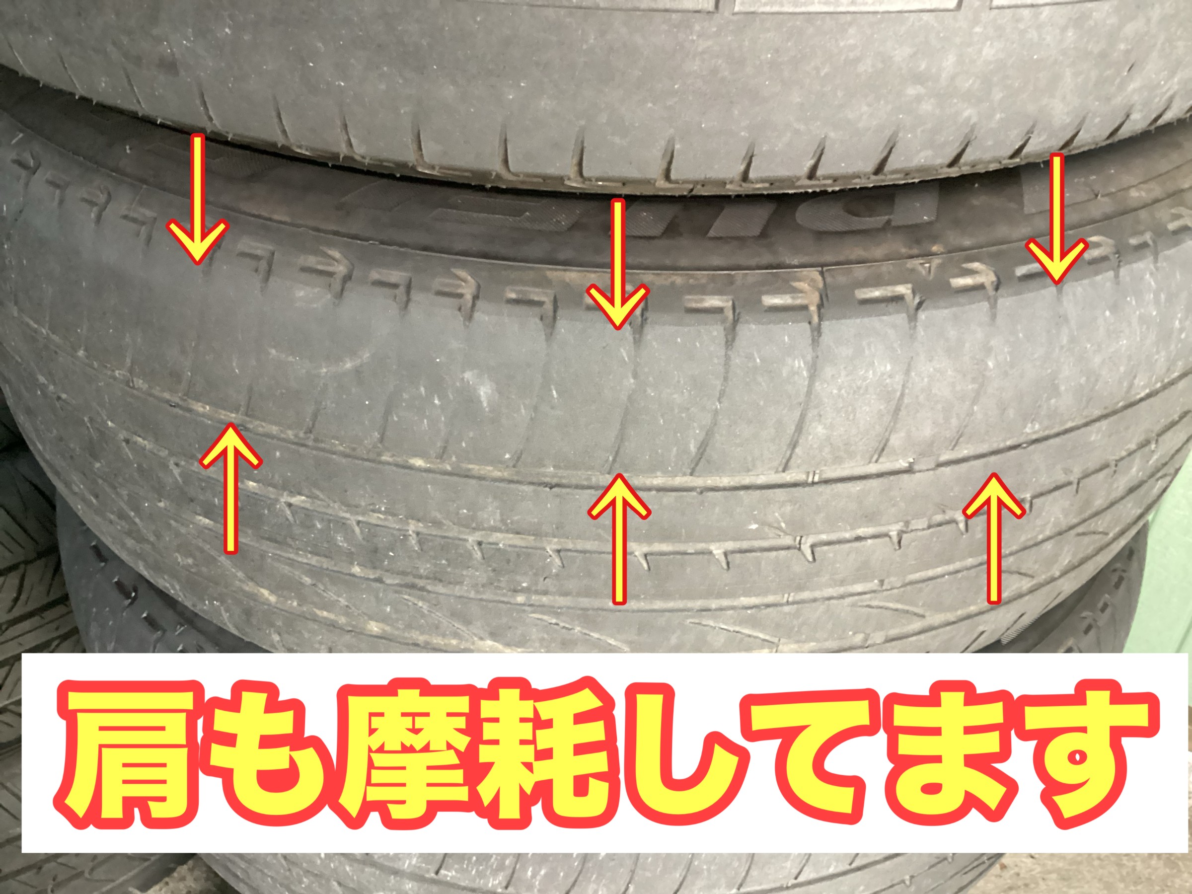 トレッドサイド部も摩耗しており排水性が悪く危険です。