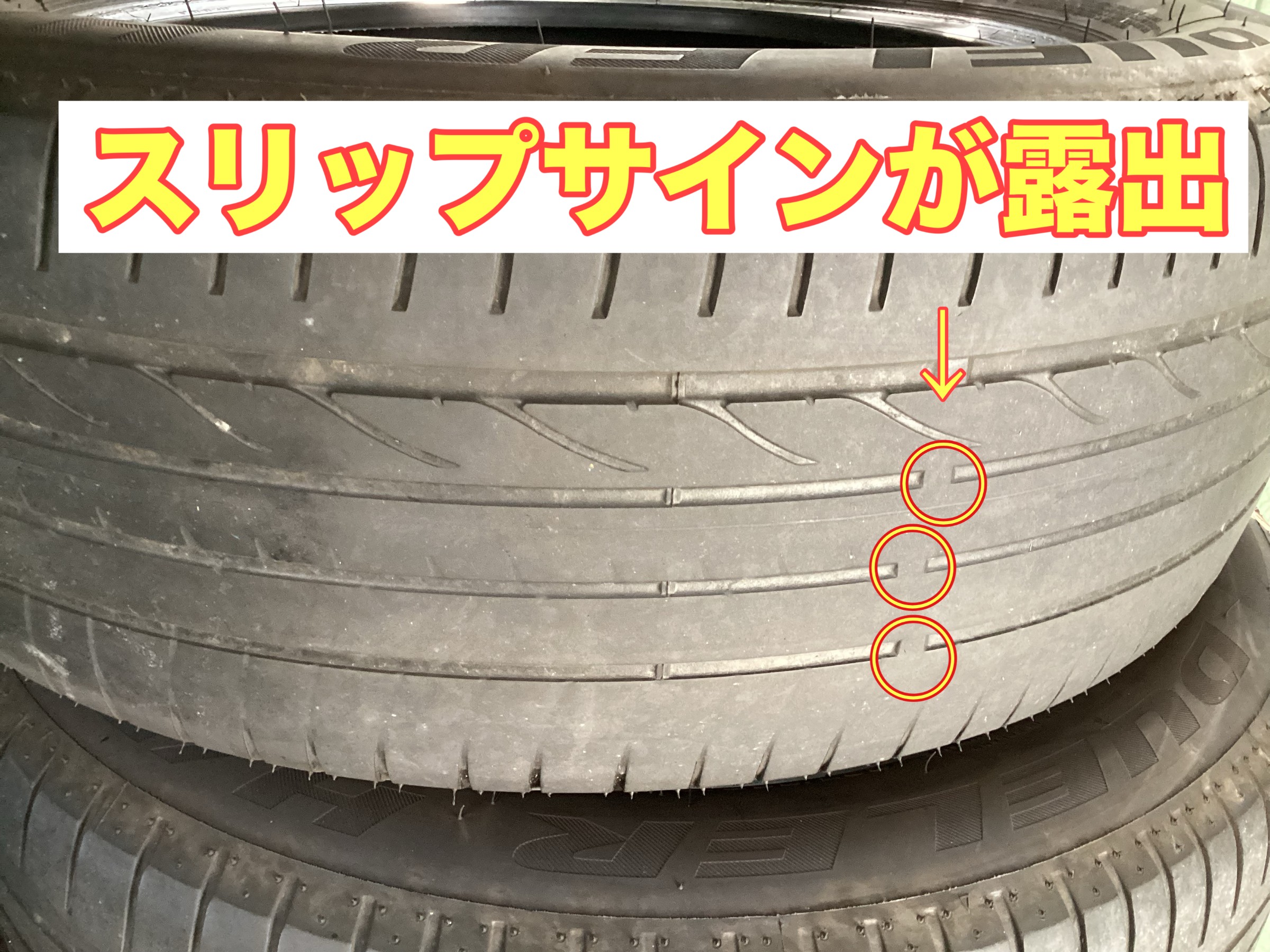 トレッド面のスリップサインが出現しています。
