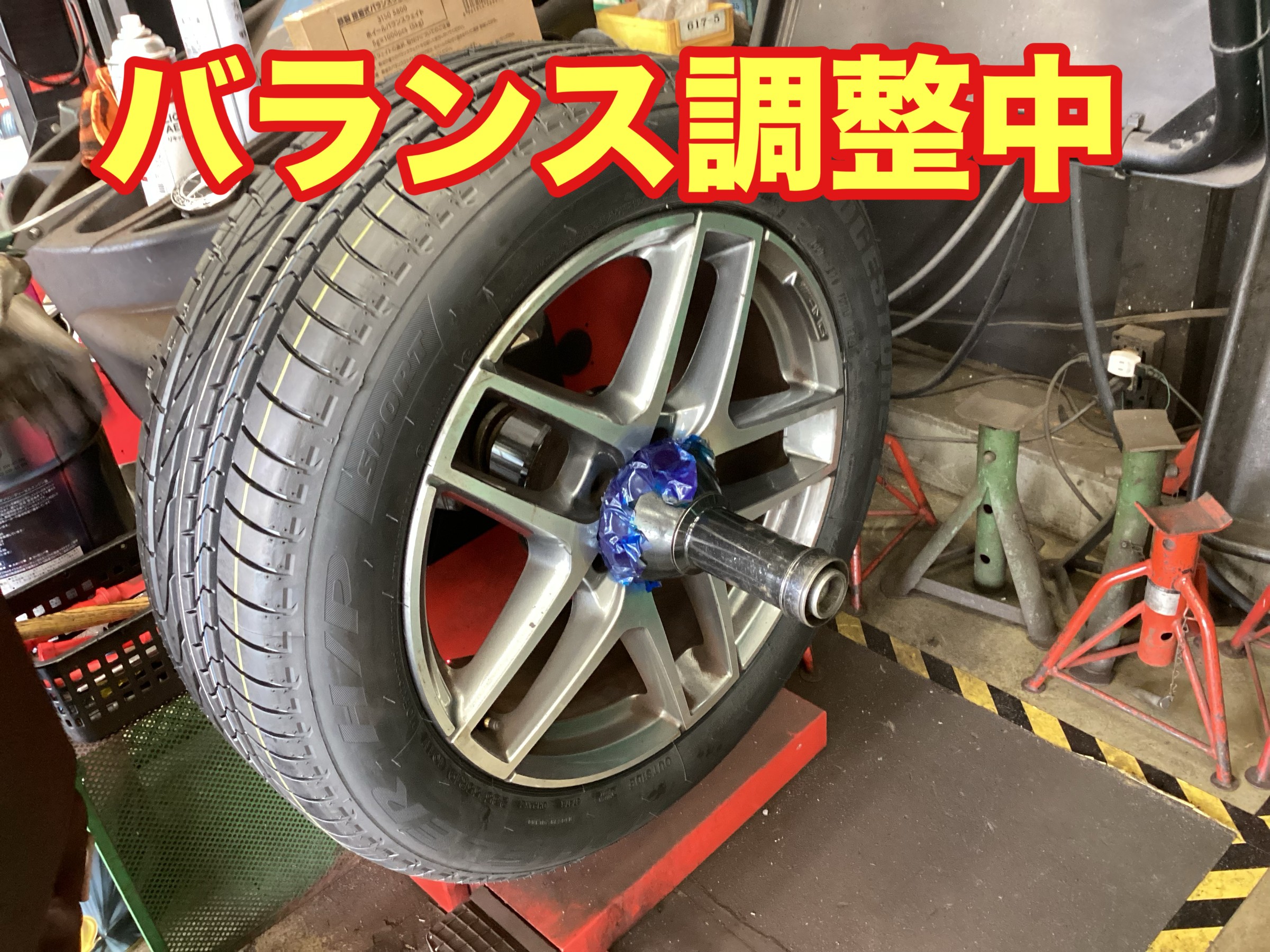 新品タイヤを組み込んだ後はバランス調整も行います!!