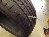 今回はタイヤのトレッド真ん中あたりに刺さっており、内圧も抜けない状態で