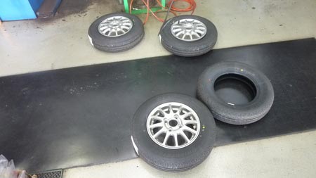 スタッドタイヤから夏タイヤの履き替えでご来店されましたが、生憎タイヤは坊主な状態…加えてホイールがスチールであったりアルミであったりとチグハグな有様でした(苦笑)