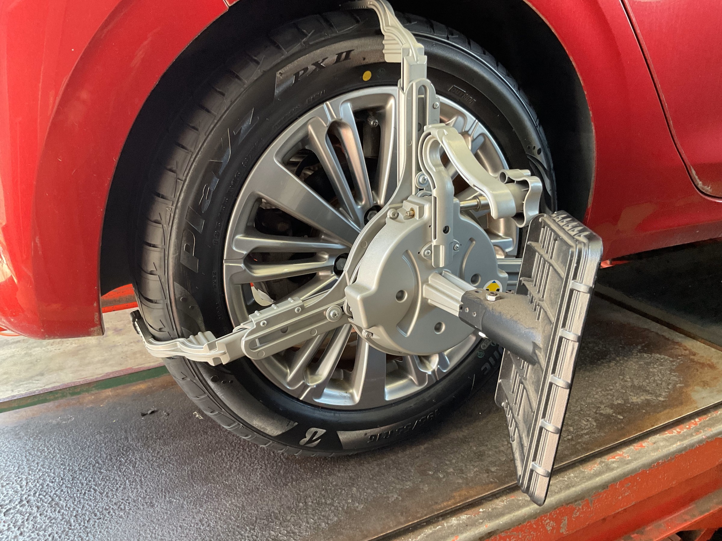 今回の場合、タイヤの新品交換に伴うアライメント調整となりました。