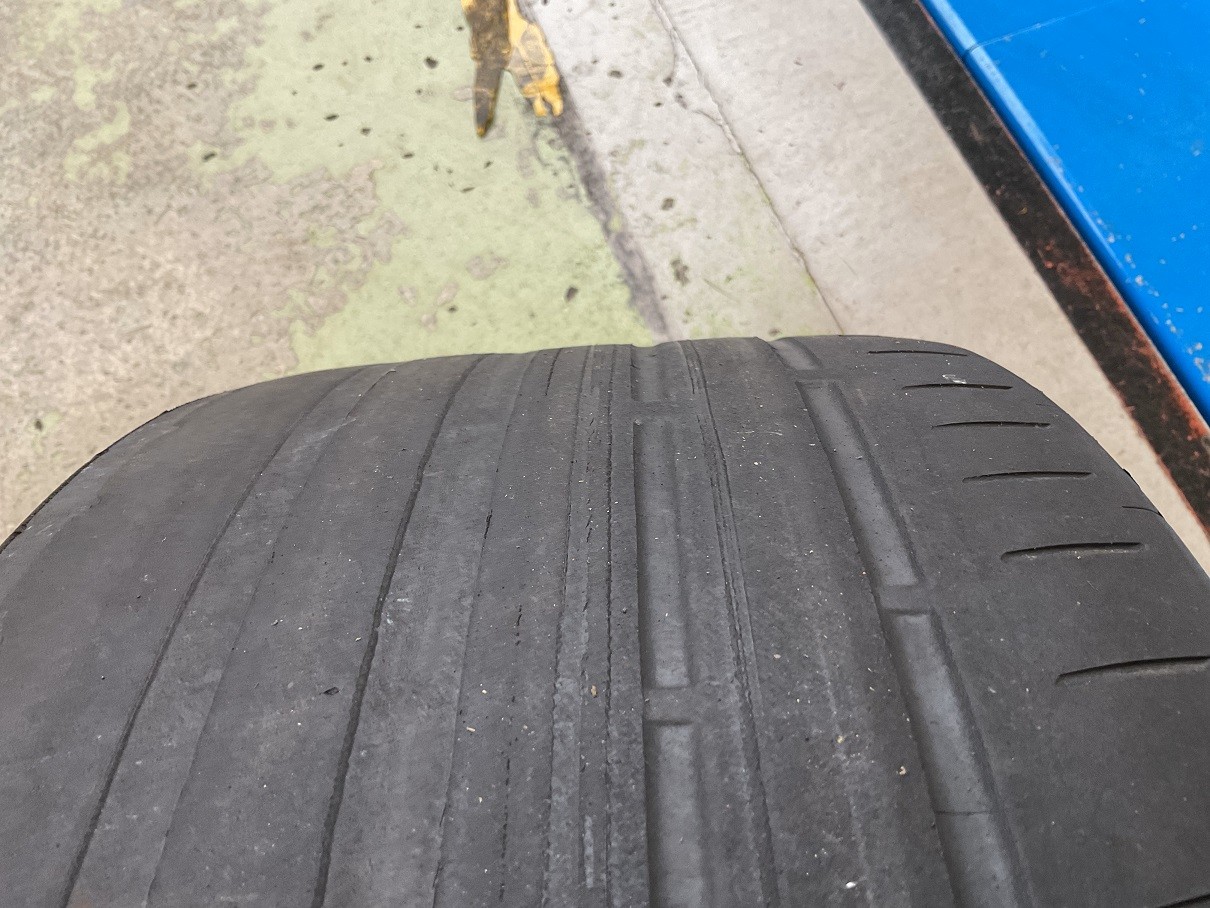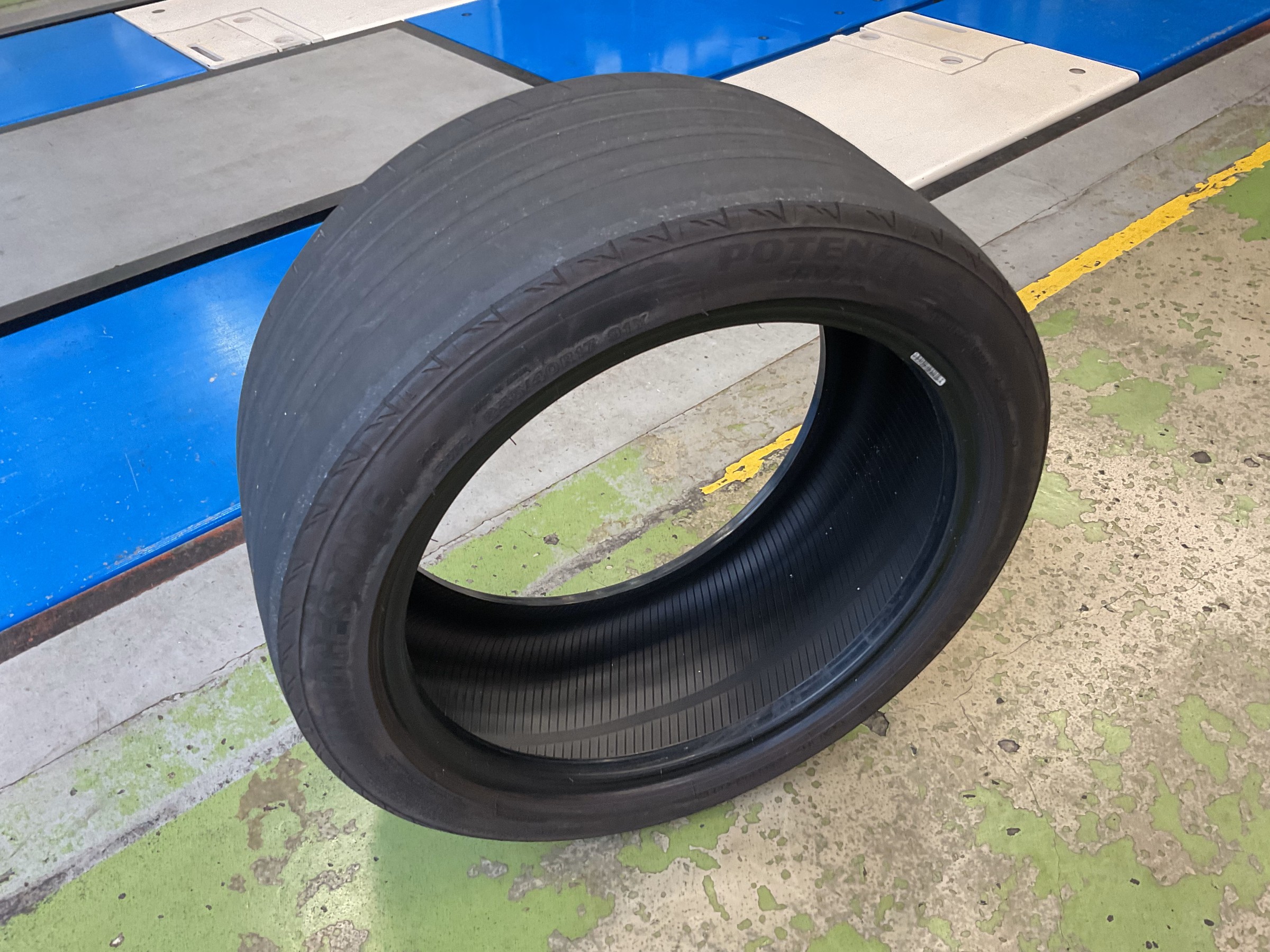 また、この状態のタイヤは法律的に使用できない事から交換となります。