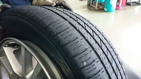 流石に10年近く経っておりますので、写真のようにタイヤはヒビヒビです(怖)