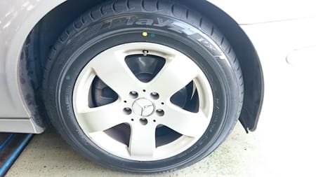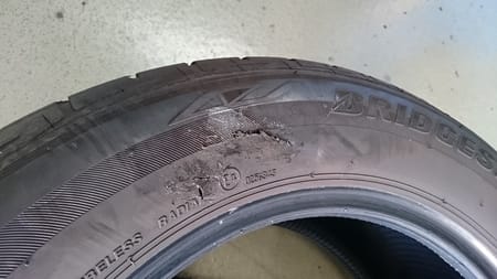 縁石に引っ掛けてタイヤサイドが削れてしまった211。
