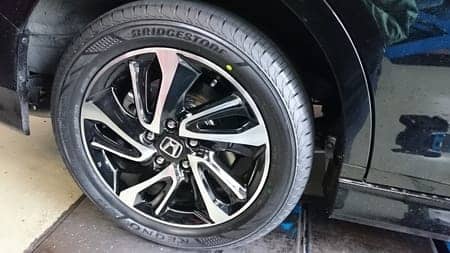実はこの車はまだ6000キロほどしか走っておらず、以前も同一箇所をパンクされたようでここだけ新しいタイヤが装着されていました。
