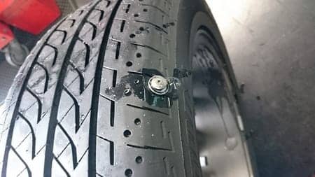 パンクでご来店されたステップワゴンでしたが内側のショルダー部分にネジが刺さっており、残念ながらこの位置では修理が出来ませんので交換となりました。