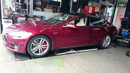 テスラモデルSが来店され、スタッドレスから夏タイヤへの履き替え作業でした。