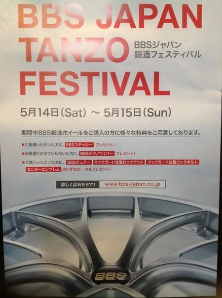 今回のフェアーでは、BBS鍛造ホイールを展示販売するほか、店舗ご来場者、お見積り、ご成約の方に対し、様々な特典を用意しています。