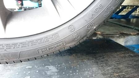 左前のタイヤを縁石などにぶつけてしまったのでしょうか、セパレーションを起こしてしまっています。