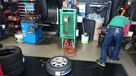 昔懐かしラシーンのタイヤ交換依頼を受けました。