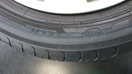 タイヤを確認しますとサイドウォールの文字が擦れて見えなくなっています。