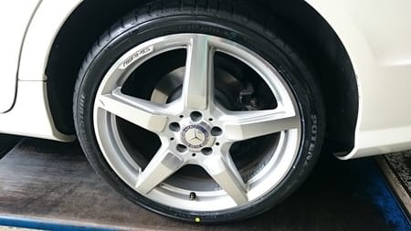 装着タイヤはPOTENZA S001となりましたが、285/30R19のタイヤサイズは横から見ますとほぼほぼホイールが転がっているように見える薄さですね(笑)