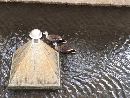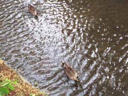以前の日記でも「カルガモ観測ネタ」を紹介した気がしますが、この通り沿いにカルガモたちは生息しております。。
