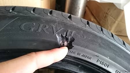 タイヤ交換したばかりのタイヤがこんな事に・・・。