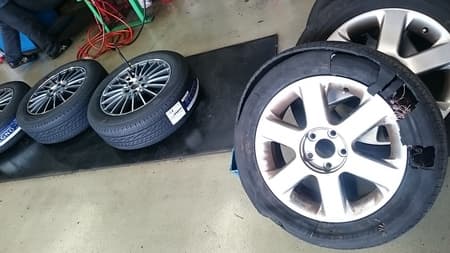 破断したタイヤもさる事ながらホイールも変形が疑われた為、どちらも交換となりました。