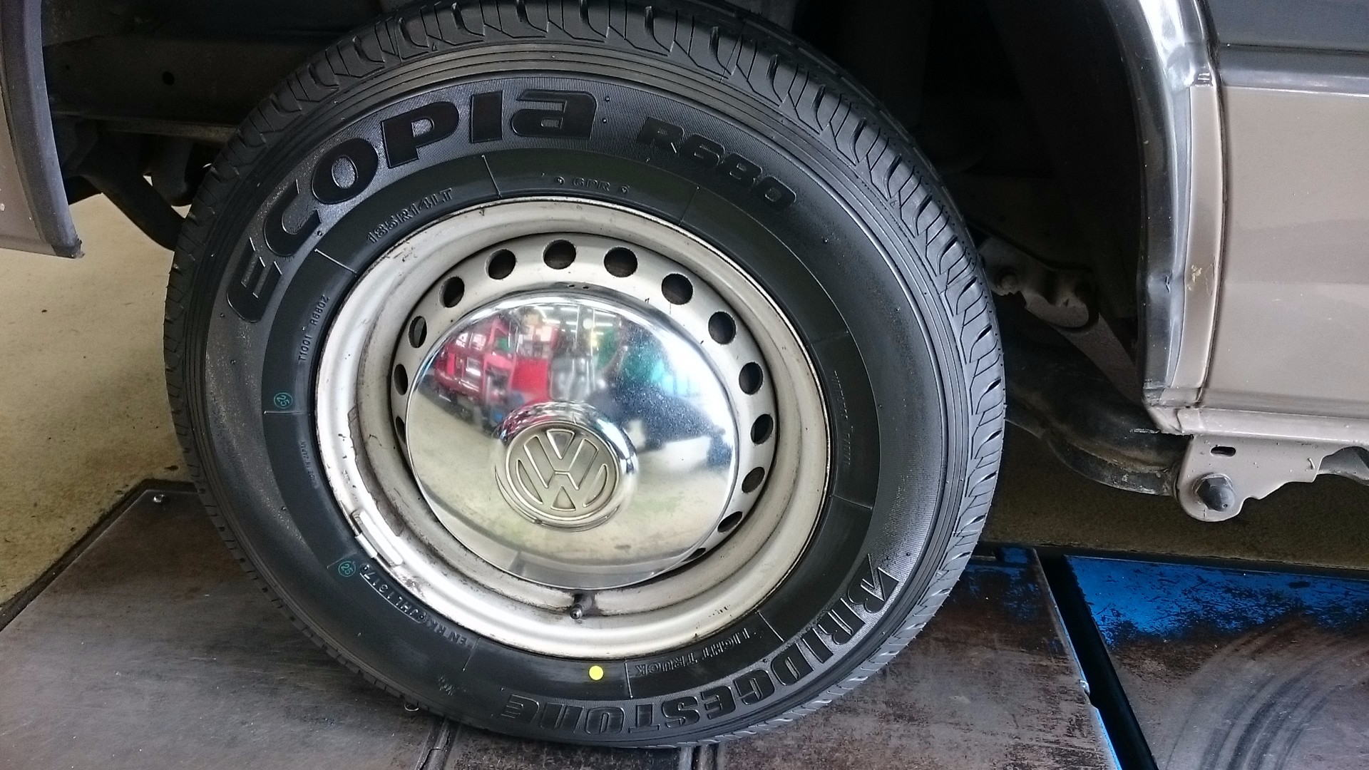 本来バン用ラジアルタイヤが標準装着ですが、乗用車用タイヤが付いておりましたのでエコピアR680に交換致しました。