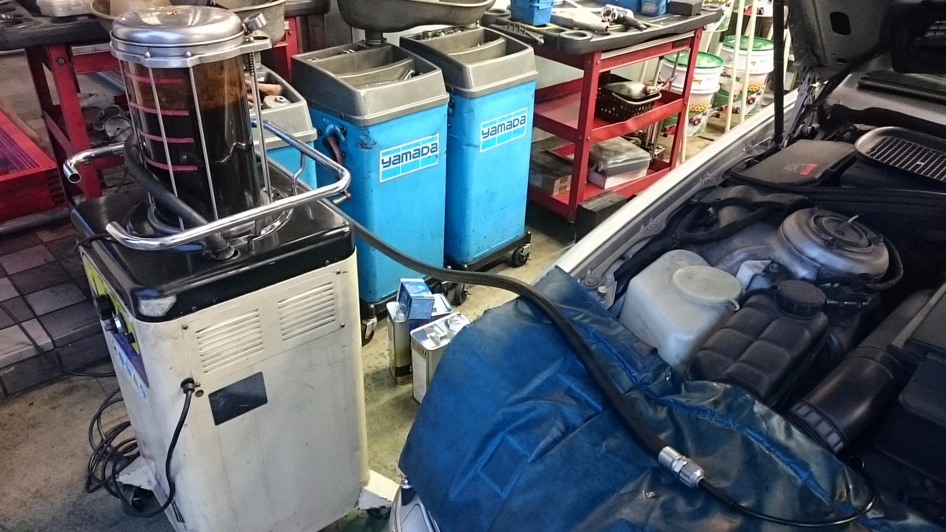 当店では上抜き可能なオイルチェンジャーがございますので、ベンツのようにオイルフィルターも上に付いているようなお車は非常に作業時間が短縮できます。