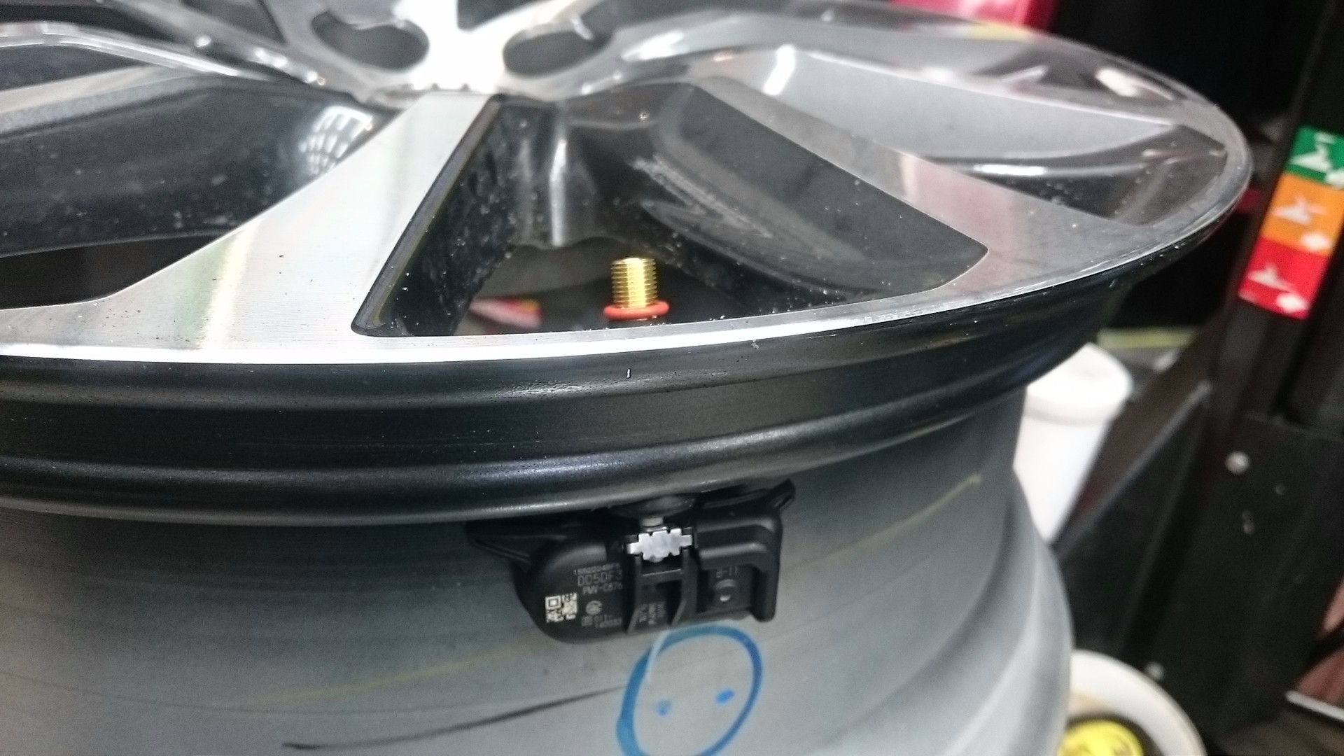 各ホイールにセンサーを取り付けます。