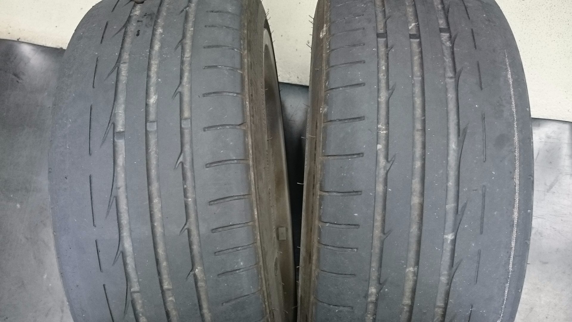 ご覧の通り、タイヤ交換前のタイヤはかなり外減りをしています。