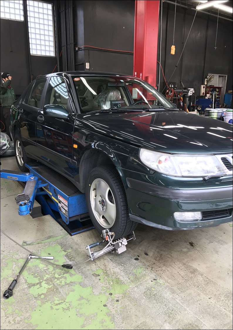 本日はSAABにスタッドレスタイヤをお取付いたしました。