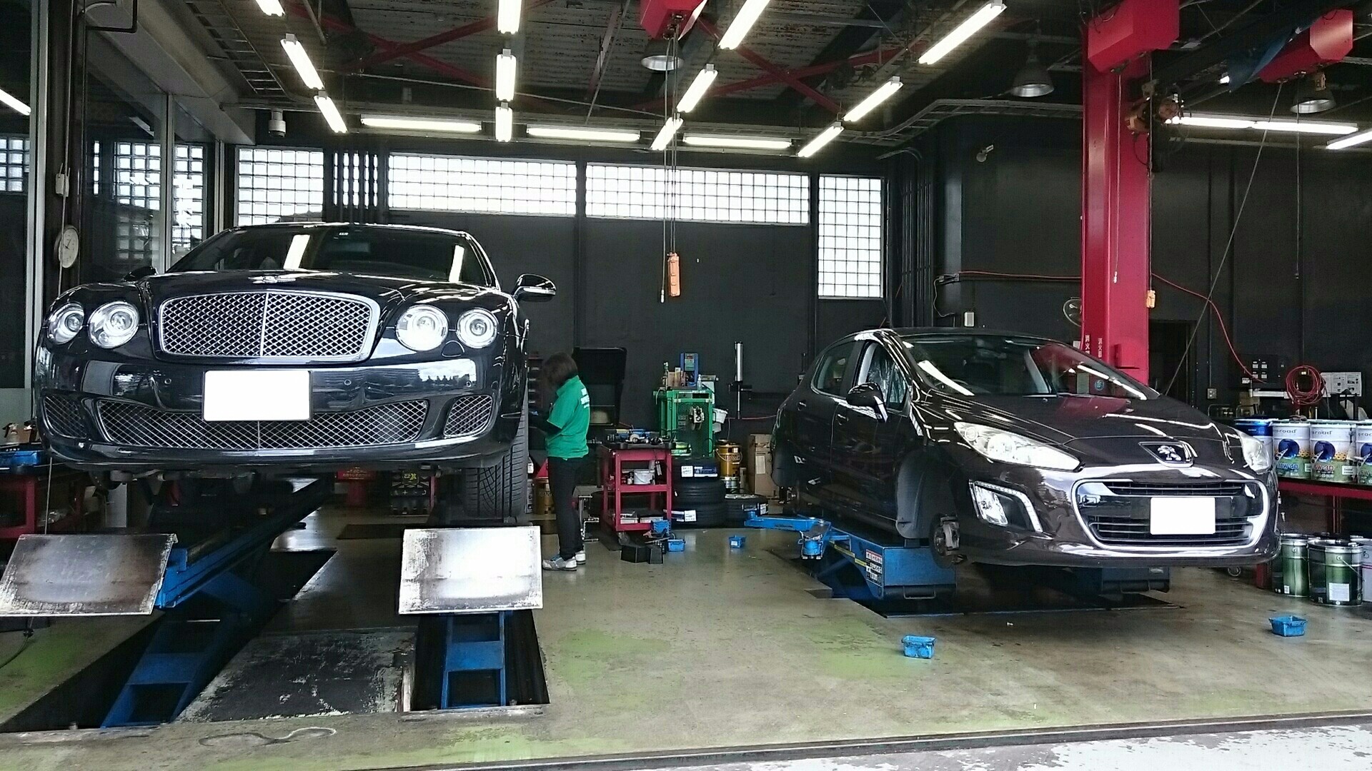 そしてプジョー308と、パンクでご来店されたベントレーです。