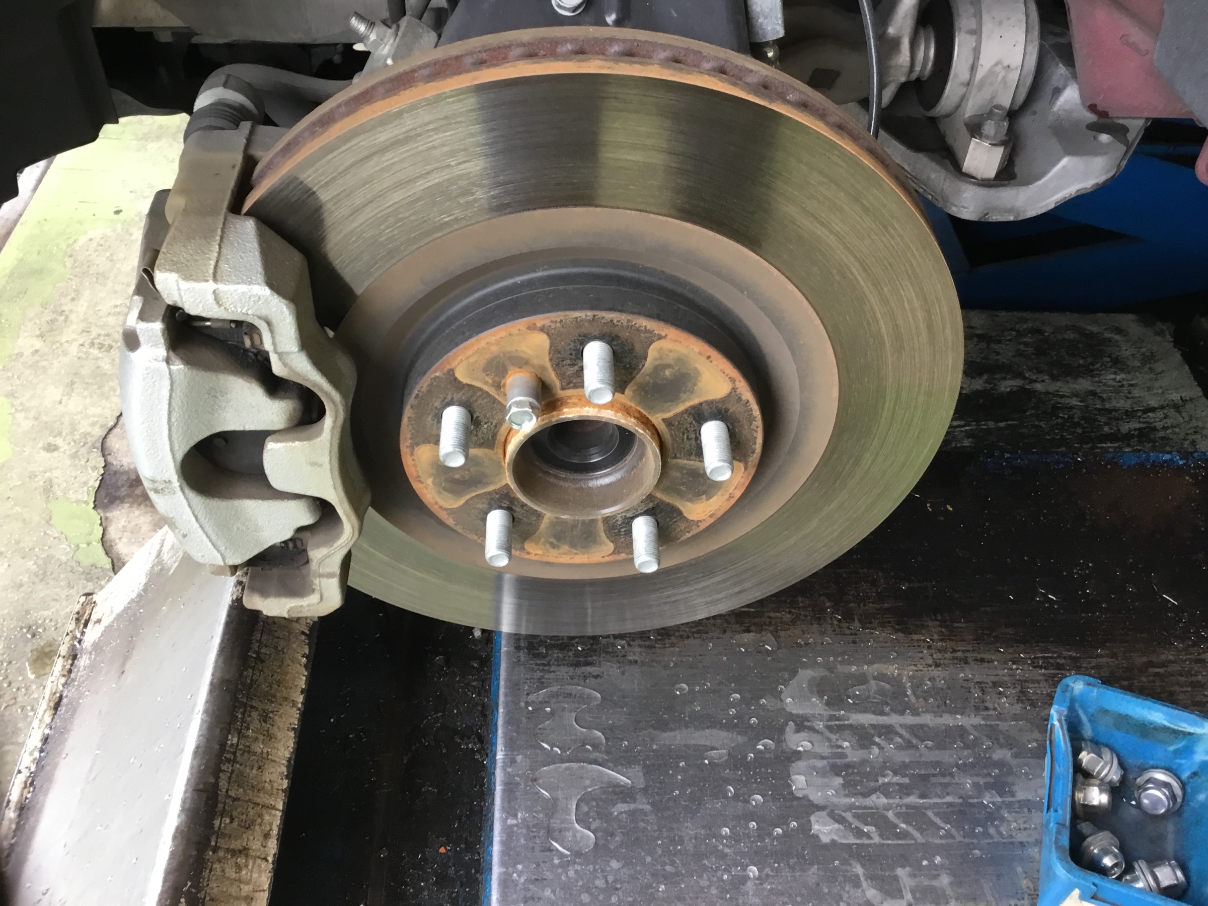 画像3:フロントハブを磨く前です。やはり中心を出したいですし、回転