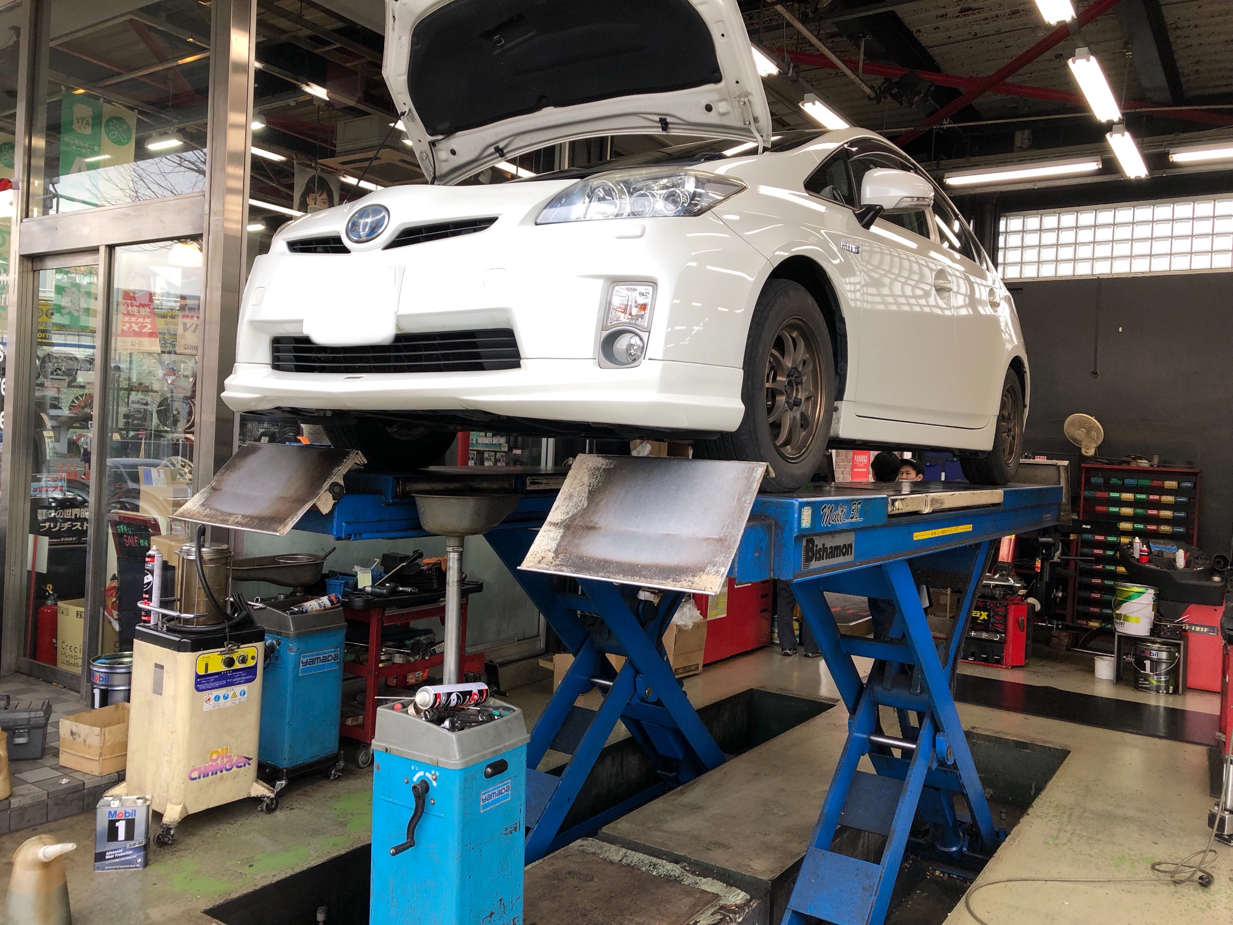 今日はプリウスのハイブリッド トランスアクスルフルードの交換です。