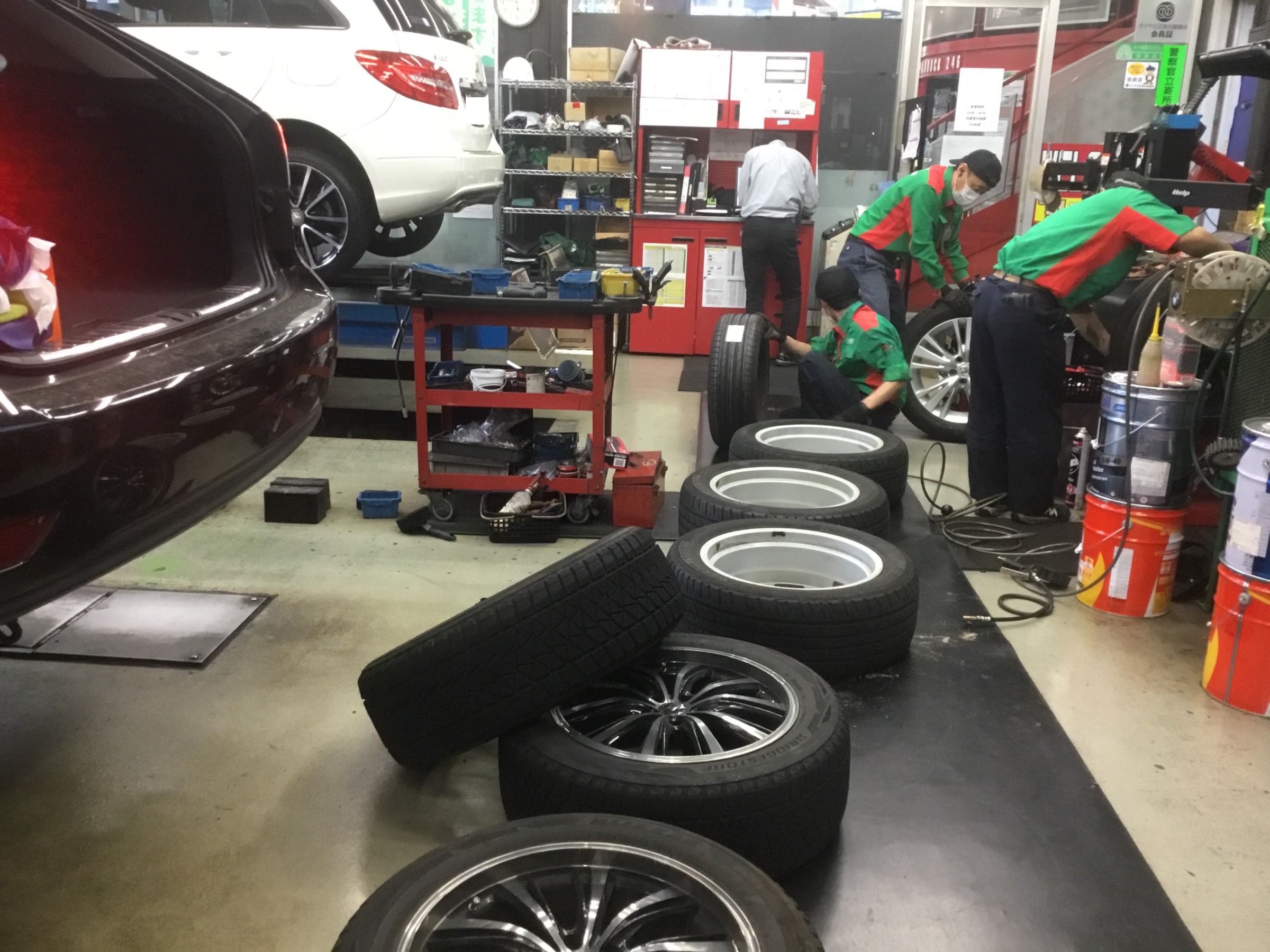 画像2:タイヤの新品交換もラッシュが続きます。