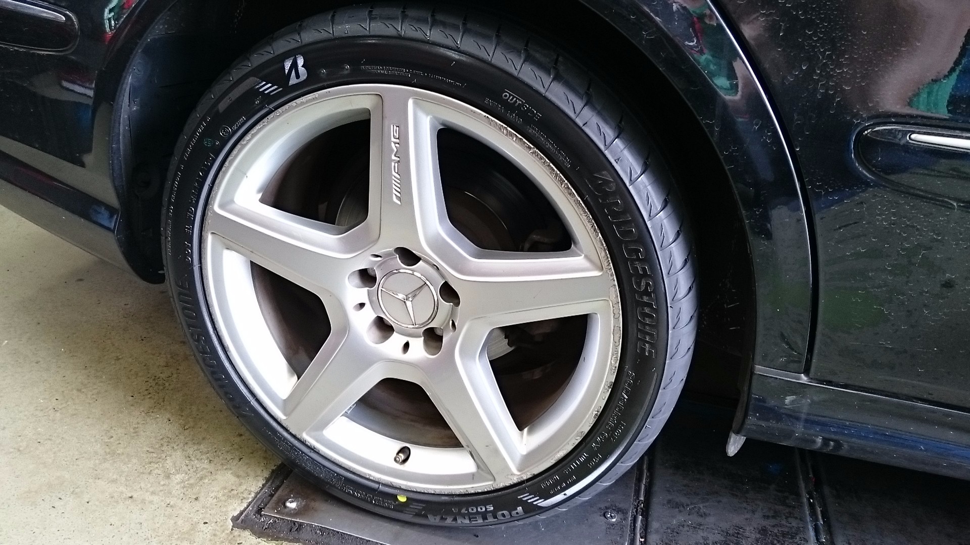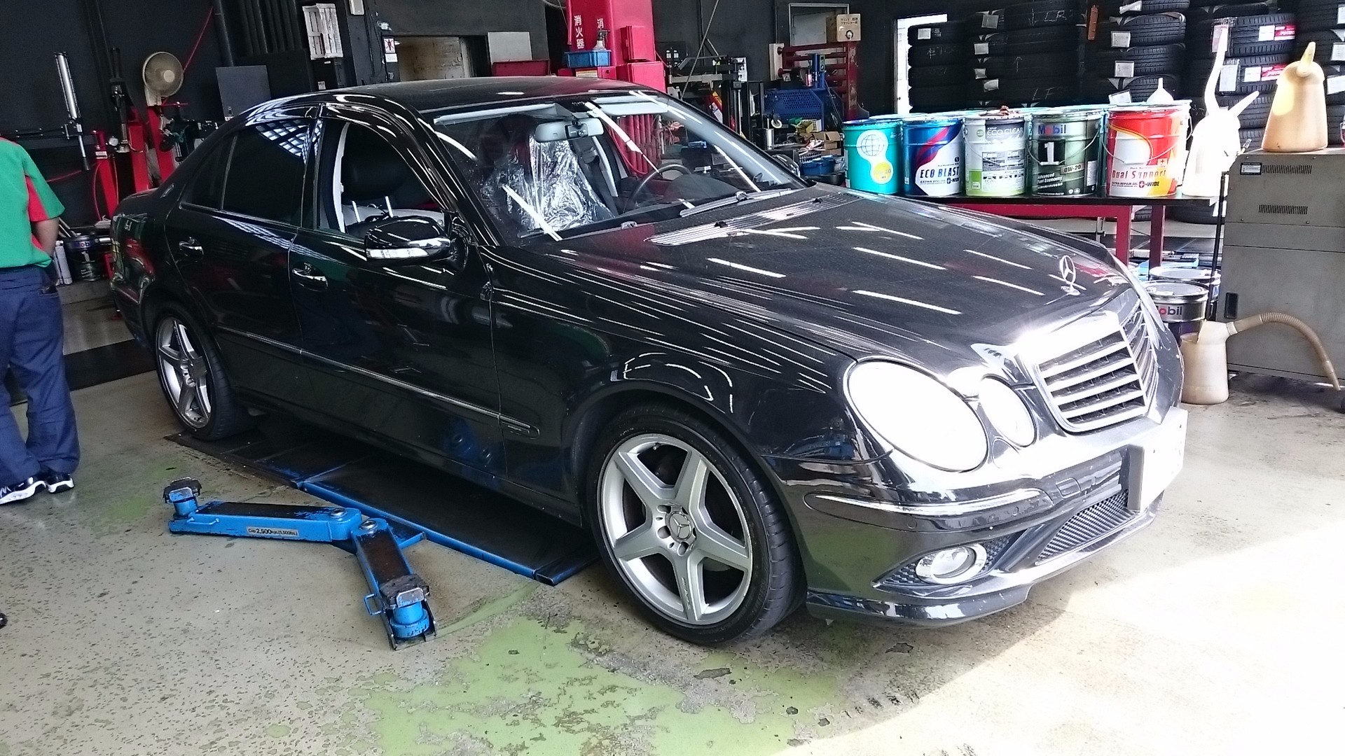 パンクをされタイヤ交換で入庫のW211 Eクラス。