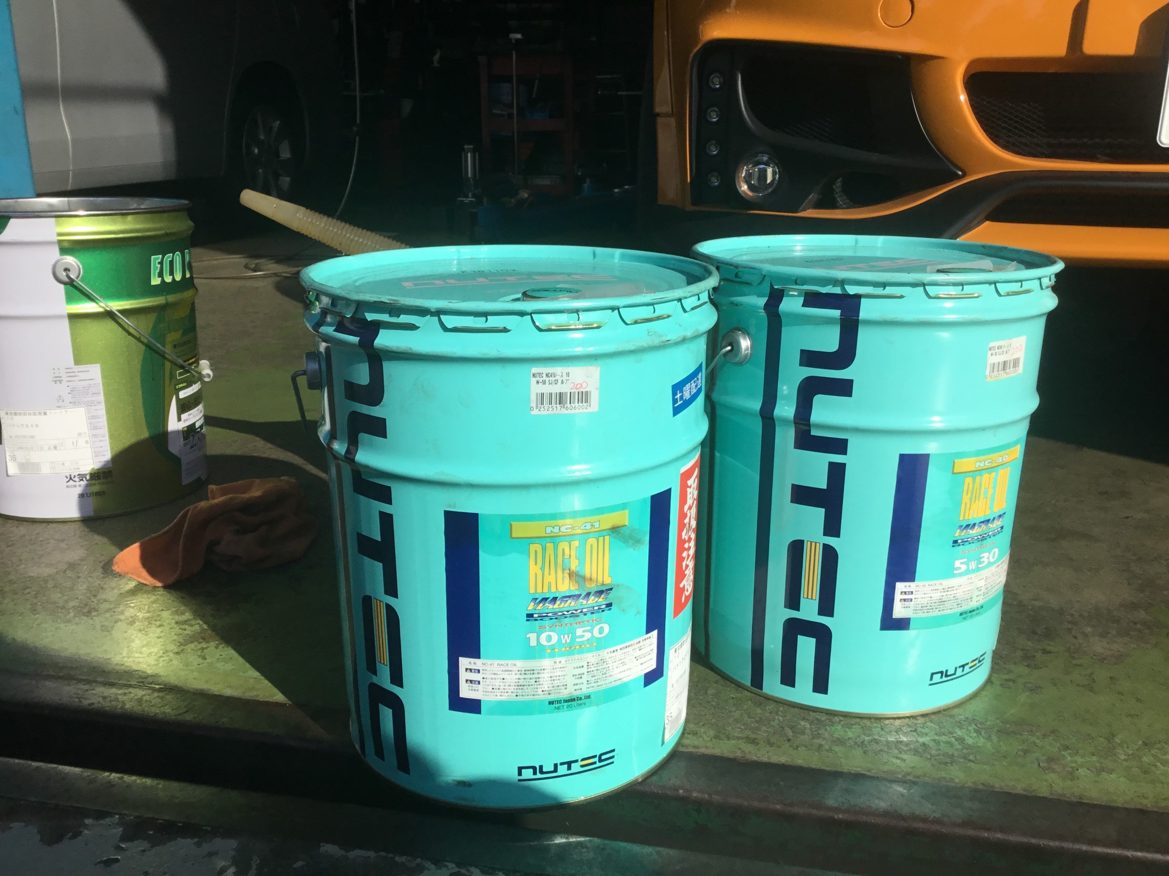 ニューテックのレース用高性能オイル、「NC-40 5w-30」と「NC-41 10w-50」をブレンドして使用しました。