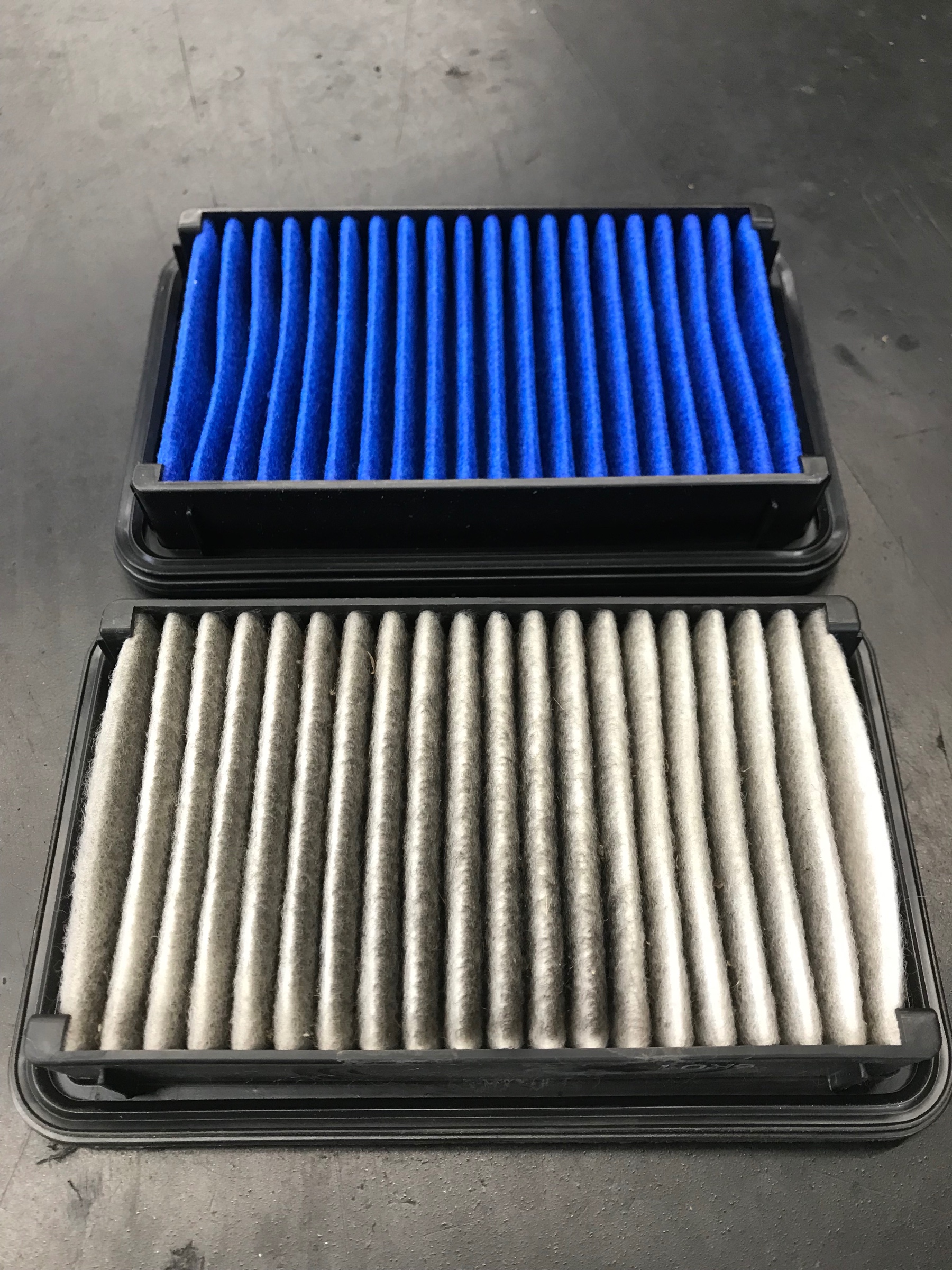 下の純正フィルターは汚れていますね!!