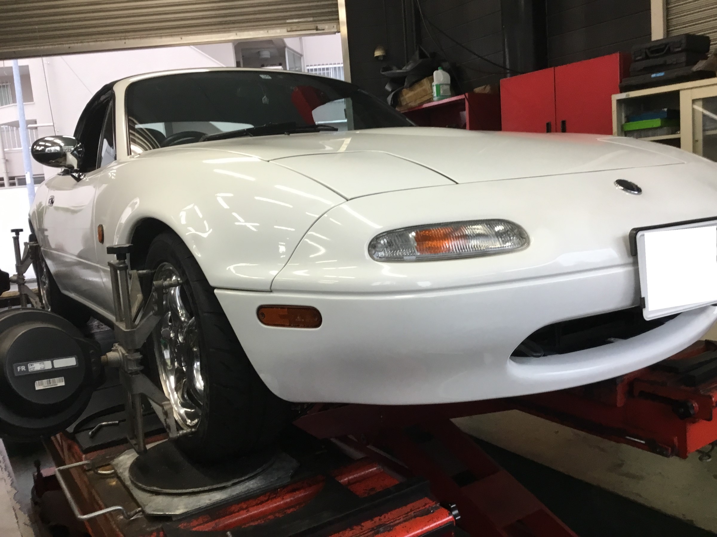 懐かしのリトラクタブルヘッドライトを装備した、NA型のロードスターのアライメント調整です(*‘ω‘ *)