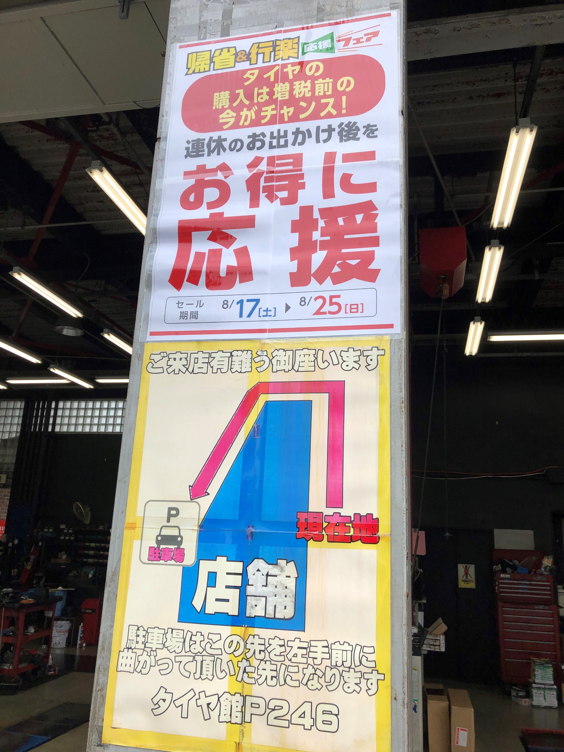 タイヤ館は8/20~8/22までお盆休みとなります。