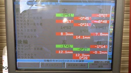 交換前のタイヤ問診時に既にアライメントのかなりのズレが予想できておりました。。