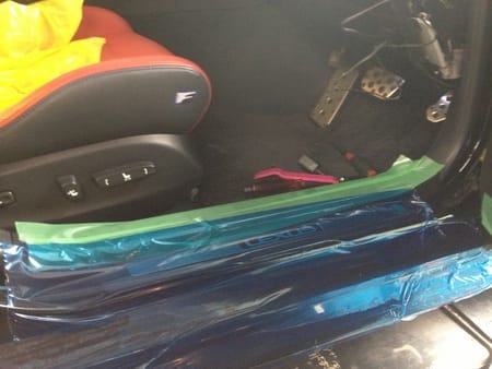 しっかり保護テープを貼って、大切なお車を傷つけないように慎重に作業します