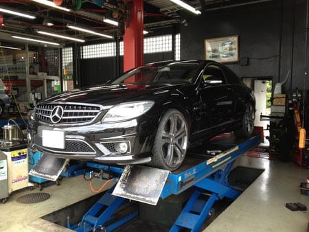 今日は BMW650ⅰのアライメント調整とMB CL63AMGのロアリングキット(車高ダウンキット)取付でした。