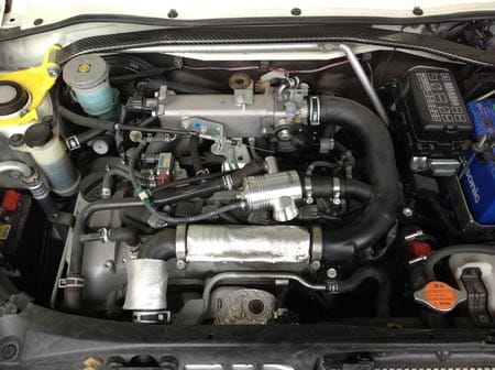 前の店では、アルミ・ブレーキ・ダウンサス・メーター類等々いろいろやっていただいており今回は「タイヤ」「エアロ」「パイピングキット」を交換です!
