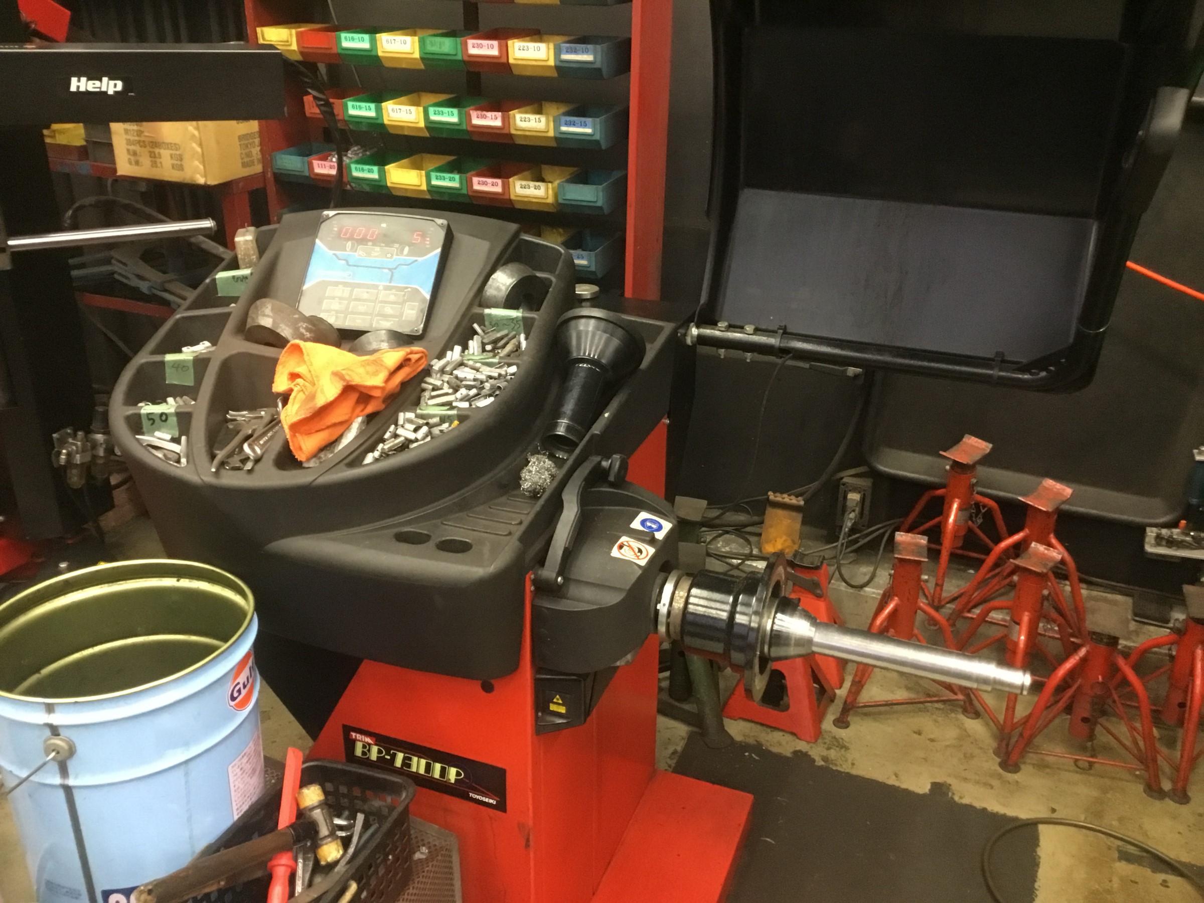 タイヤチェンジャーも雑巾で拭いてピカピカに!