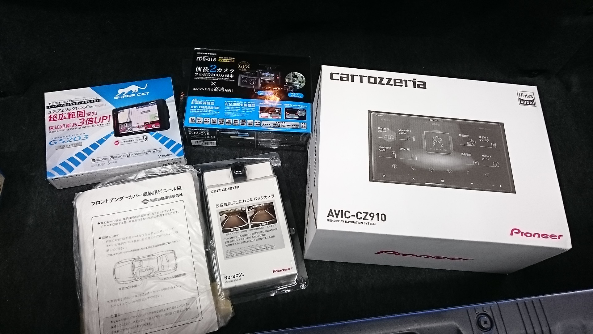 今回の取り付けプログラムはナビゲーション、ドライブレコーダー、バックカメラ、レーダーなど。