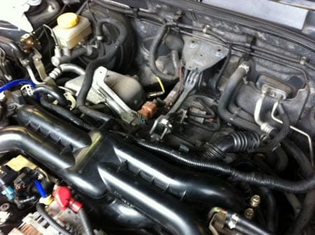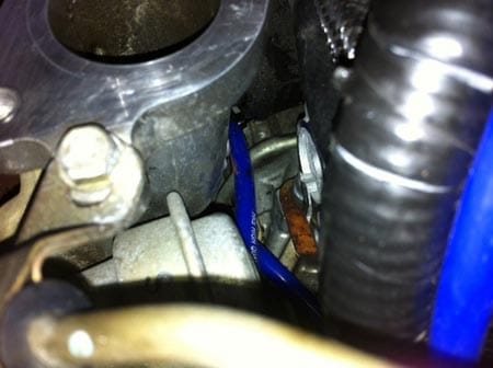 それだけの為にインタークーラー~インマニ~その他周辺関連パーツをはずしていき、インマニ下部のターボパイプをタービンから抜いて作業スペースを確保します(あくまで私の手順)。