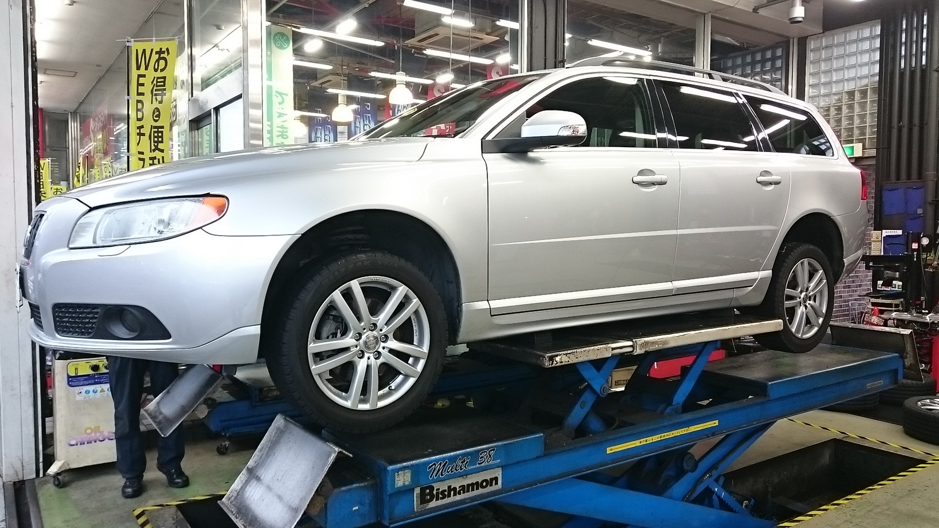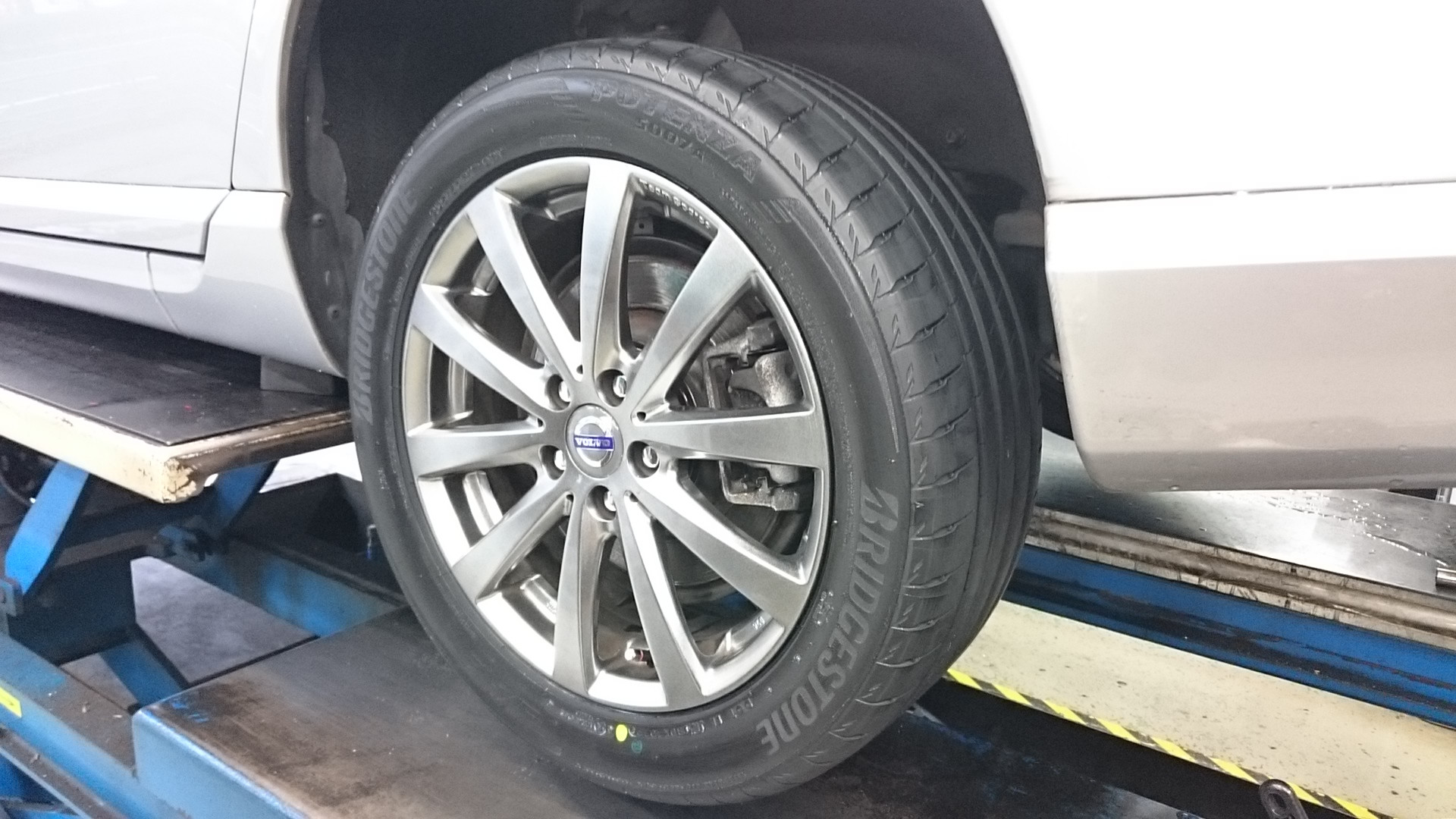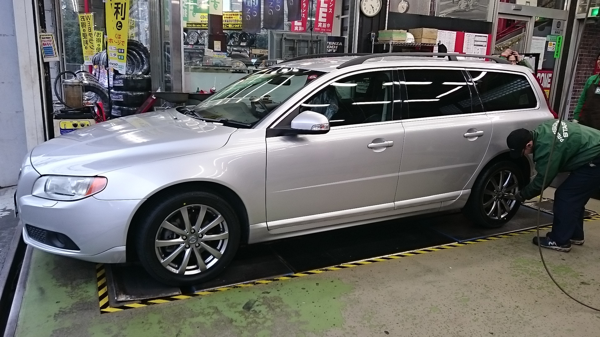 本日はV70のお客様が履き替えにご来店、夏タイヤが減っておりましたので交換して装着です。